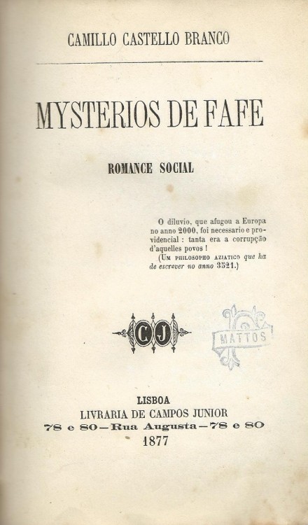 Lisboa. Livraria de Campos Junior. 1877. In-8º de 239, [1] págs. Enc.